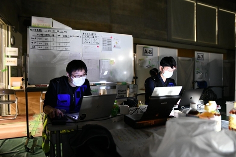 | (現地で夜勤にあたる本院DMAT隊) |